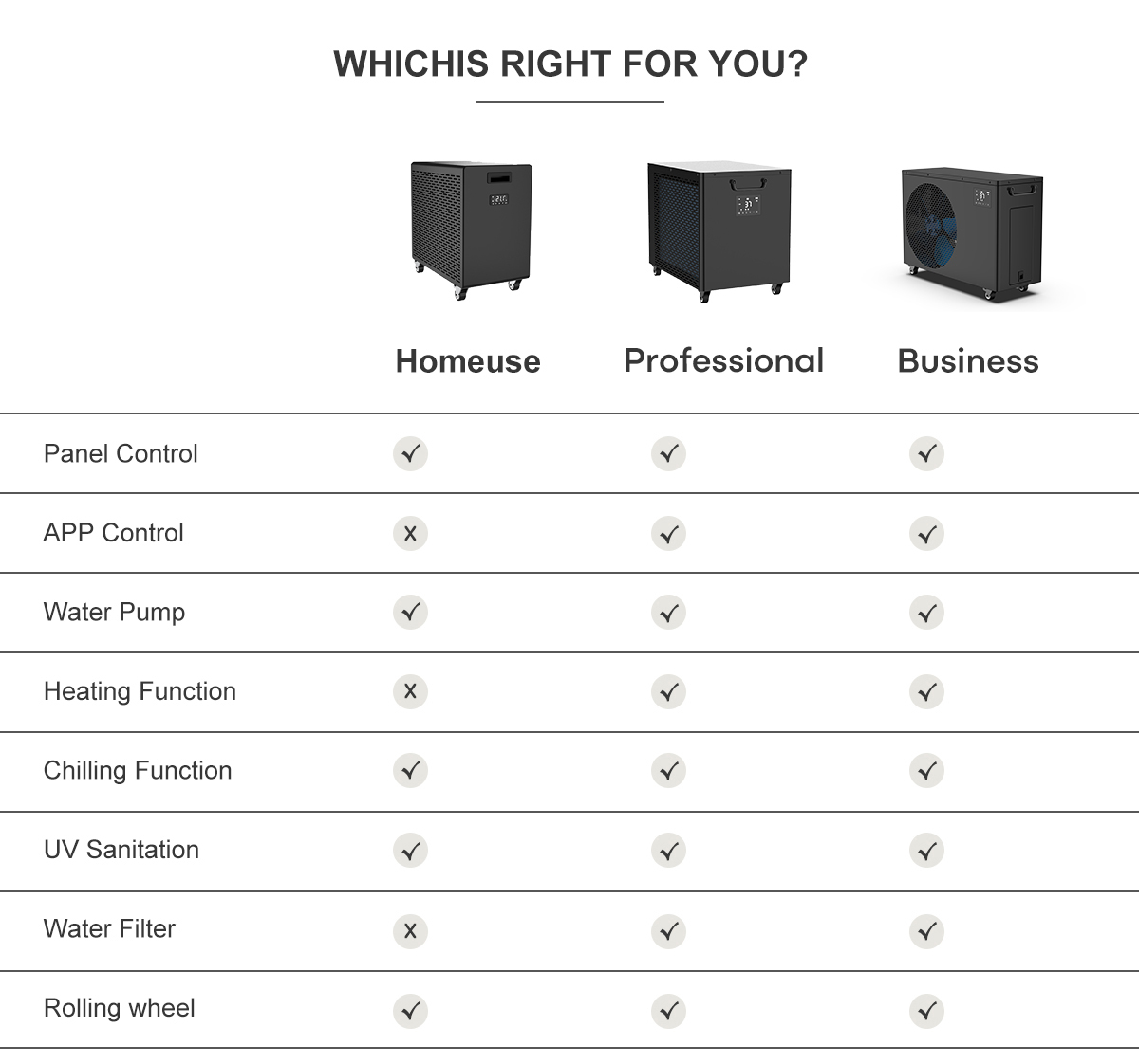 کاربران گاه به گاه که به جلسات فرو رفتن سرد یک یا دو بار در هفته نیاز دارند، می توانند سیستم های اولیه با ظرفیت خنک کننده متوسط ​​را پیاده سازی کنند. با این حال، ورزشکاران حرفه‌ای، امکانات آموزشی و مراکز سلامتی که چندین جلسه روزانه را انجام می‌دهند، به تجهیزات قوی برای خنک‌سازی سریع، عملکرد ثابت و قابلیت اطمینان عملیاتی طولانی‌تر نیاز دارند.