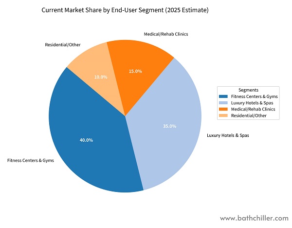 هتل های لوکس و اسپا 35% ایجاد تجربیات منحصر به فرد مهمان (به عنوان مثال، دوچرخه سواری حرارتی: سونا + حمام یخ). چیلر هوشمند All-in-One Ultra & Luxury Cold Plunge: عملکرد بی‌صدا و فوق‌العاده زیبایی شناختی.
